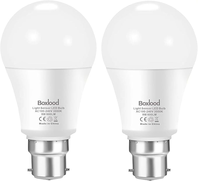 Dusk Till Dawn Light Bulbs, 6000K Cool White, 9W 60W Equivalent, B22 Energy Saving Light Bulbs for Yard Porch Patio Garden, 2Pack Visit the Boxlood Store