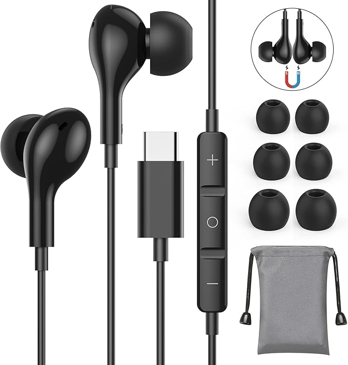 Experience immersive, on-the-go audio with the Guguearth Magnetic USB-C Headphones (Black) — designed for modern USB-C devices including Samsung, Google Pixel, iPhone 15/Pro series, iPad Pro, OnePlus, Xiaomi and more. These wired USB-C earbuds deliver balanced stereo sound with a built-in microphone and intuitive in-line controls for easy hands-free calling and media control. The magnetic earbuds attach together to prevent tangling and make storage simple when not in use. Comfortable, ergonomic, and versatile, they’re perfect for everyday listening, calls, media, gaming, and travel.