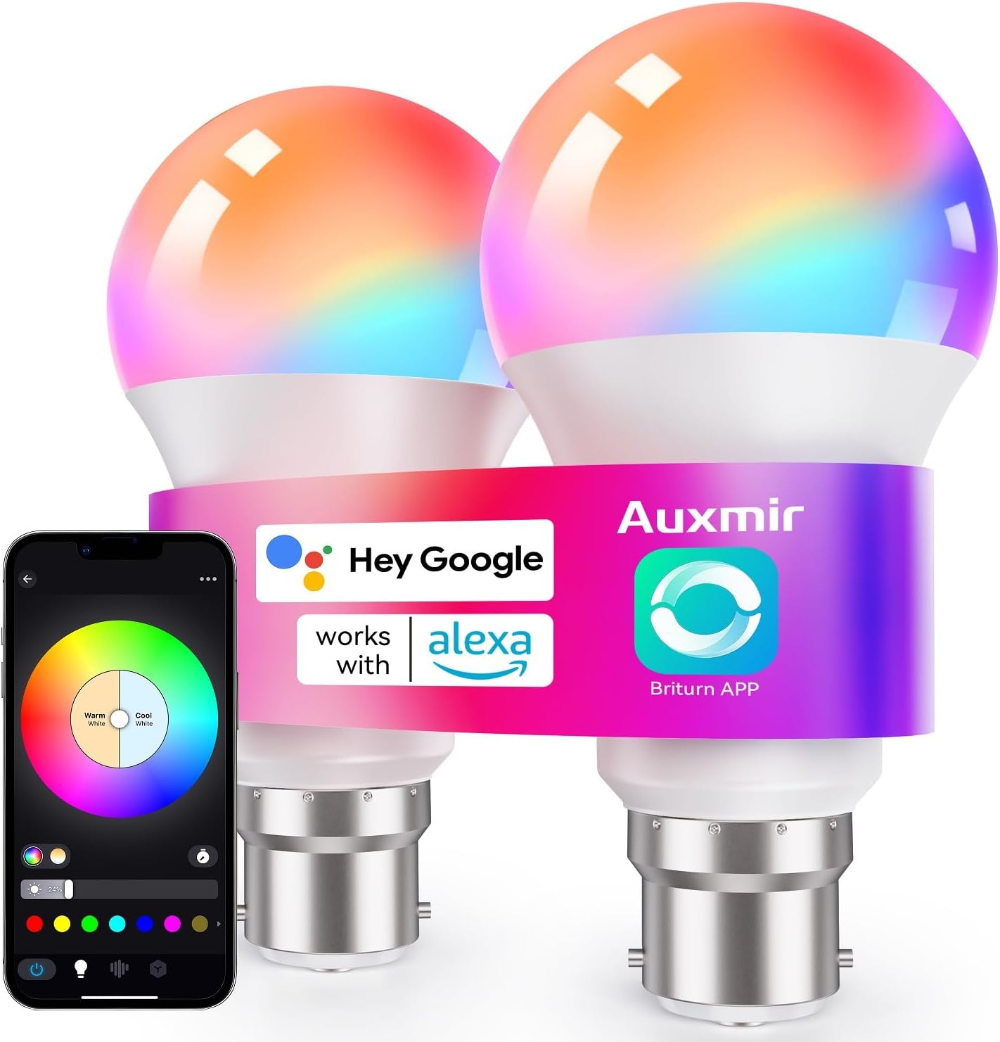 Compatible with Alexa and Google Home for effortless voice commands. Just say, “Alexa, turn on the bedroom light” or “Hey Google, set the light to blue” for instant control.