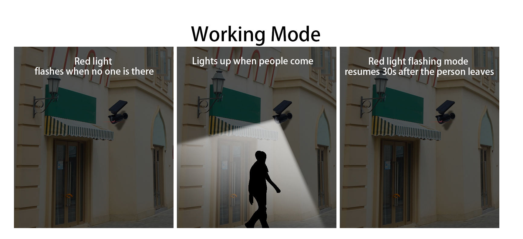 Always On Mode – Lights remain on medium brightness for up to 6 hours at night.